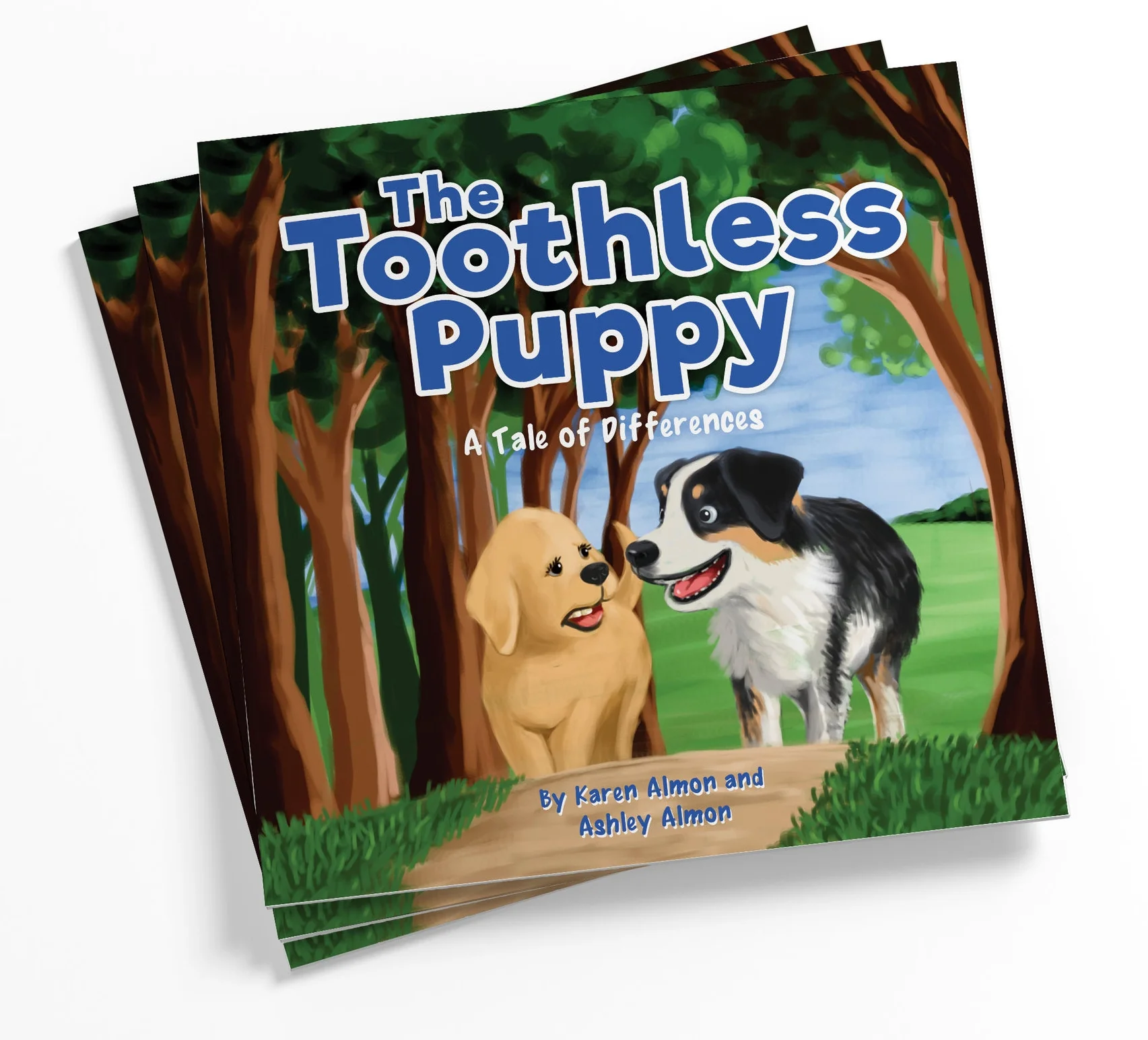Karen and Ashley Almon are a mother-daughter duo from Seattle, Washington. Karen is a retired elementary school teacher, and Ashley is a writer, artist, actor, and musician. The Toothless Puppy was inspired by the Almons’ real-life canine companions, Campbell and Wilco.